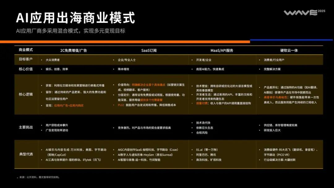 在商业模式上,AI应用出海通常依据目标客户的差异,采用混合盈利模式。