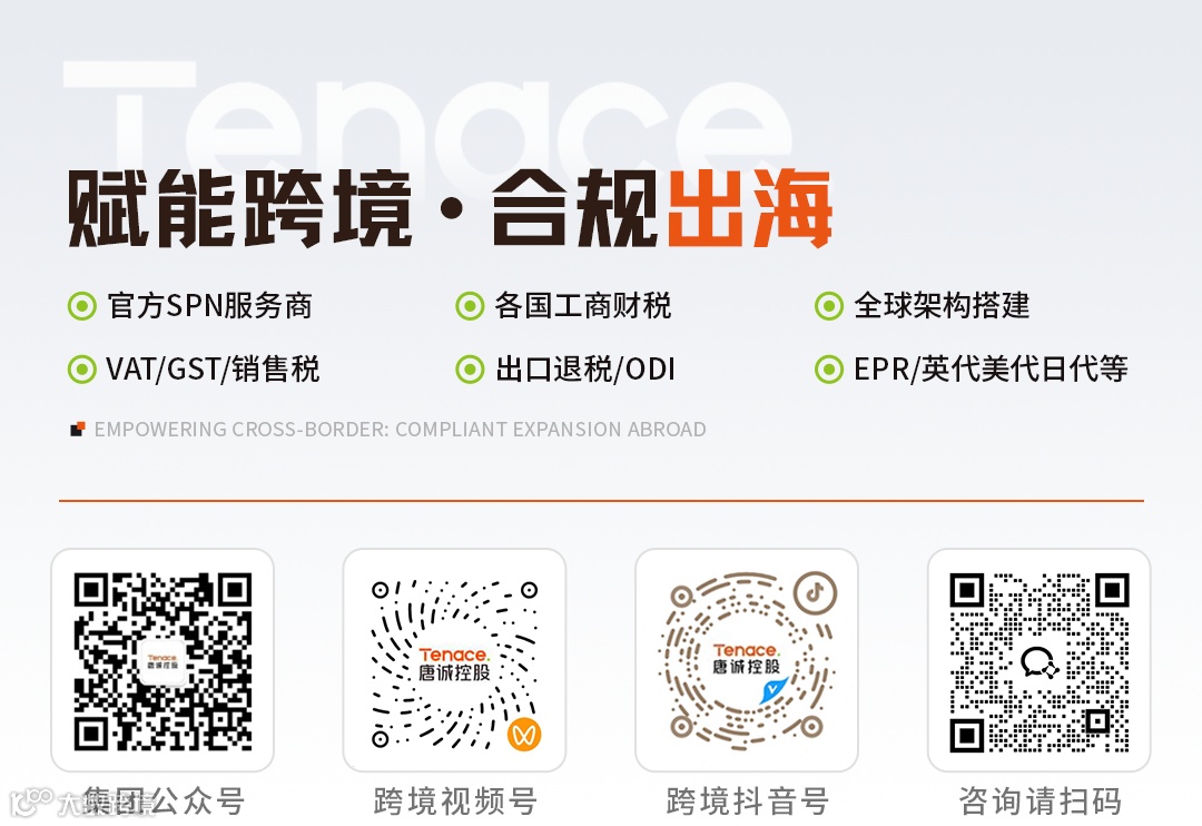 唐诚海外作为国际财税专业会计师团队,旗下唐诚维易作为专业的国际财税合规服务商,是速卖通和亚马逊的官方认证的SPN服务商,已服务超过20000多家跨境电商企业,提供包括VAT税号服务、产品合规注册(如EPR、FDA)、海外代表人(美代、英代、欧代)。旗下优领(深圳)商务咨询有限公司提供各国工商注册及财税审计,出口退税、跨境架构合规等专业服务;唐诚海外全资财税公司及团队协同作战(唐诚本土英国公司,德国公司,美国公司,新加坡公司,越南公司,印尼公司,澳大利亚公司,阿联酋公司,及唐诚香港秘书公司),提供全方位的一站式跨境税务管理服务。