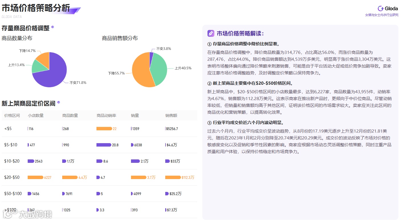 在当今竞争激烈的电商市场中,女装与女士内衣行业一直备受瞩目。随着消费者需求的不断变化和市场环境的快速演变,深入分析该行业的市场趋势、竞争格局以及价格策略显得尤为重要。本文将结合Gloda平台提供的最新数据,为您揭开这个行业神秘的面纱,探寻其中的机遇与挑战。