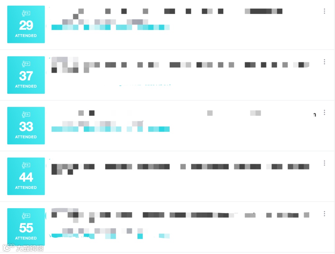 从3月到7月,一共举办了9场Webinar,参加的互动的都是精准客户,平均每场报名的有60-100人,实际参加的有40-60人左右,最多有 110 人,上线率大概40%以上。比我开始时预期的数据好很多,此前观察过不少国内外竞对的Webinar,一般在线人数也就十几人。