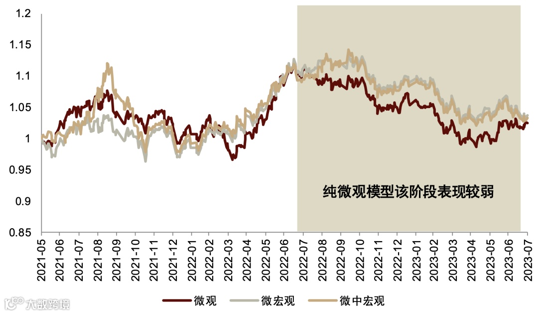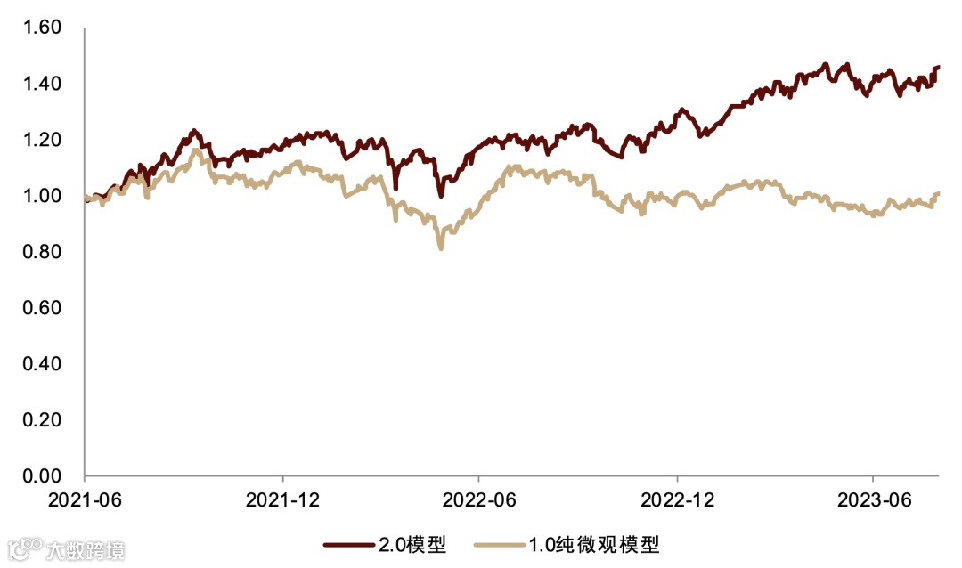 注:超额收益相对基准为中信一级行业等权基准;1.0纯微观模型测试基于2023-07-31可得数据;样本区间为2021-06-01至2023-07-31