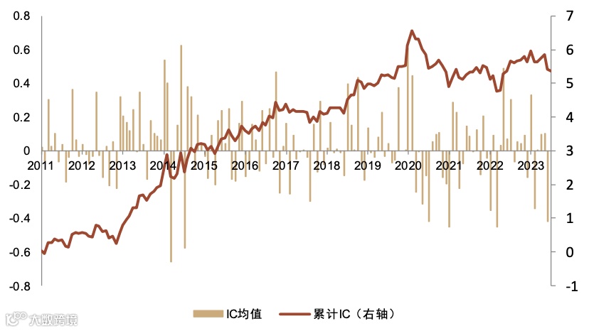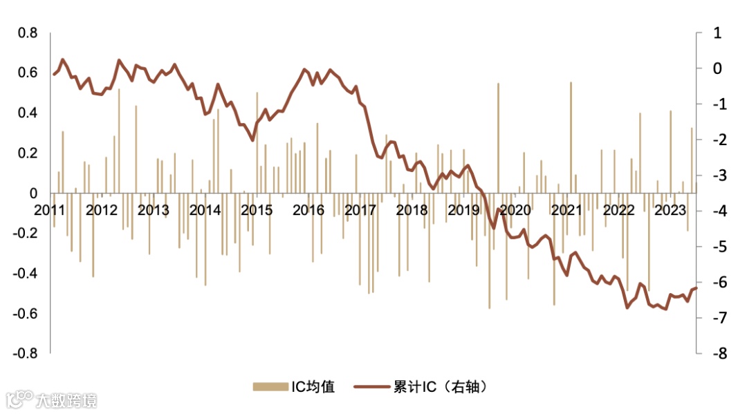 图表40:低机构拥挤度因子月度IC序列