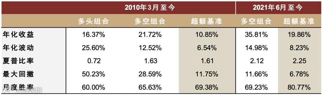 注:超额收益相对基准为中信一级行业等权基准;所有收益均年化处理;样本区间为2010-03-01至2023-07-31