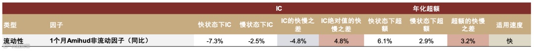 图表33:流动性因子轮动速度分域IC和超额统计