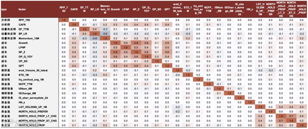 基于上述分析,中金公司构建“行业轮动2.0模型”,实现轮动节奏自适应。从24个初步因子中剔除4个相关性高且有效性弱的因子(Growth因子、LPNP_zscore、OP_SD_zscore、NORTH_HOLD_PROP_ST_CHG_origin),最终保留20个分域有效因子,因子间相关性绝对值均不超过0.6,多数显著低于0.1,确保模型多样性与稳定性[k]。