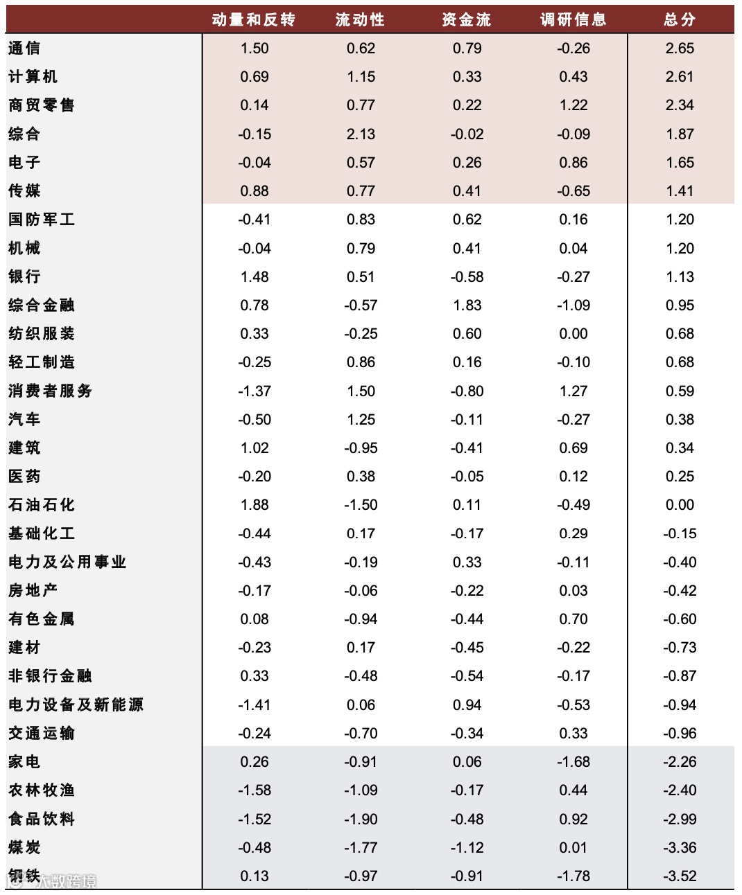 - 行业得分匹配: 根据当前轮动状态选择对应的行业得分体系;