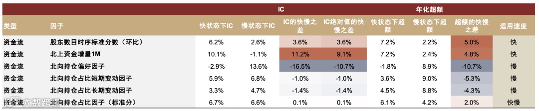 图表42:资金流因子轮动速度分域IC和超额统计