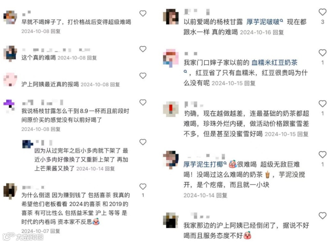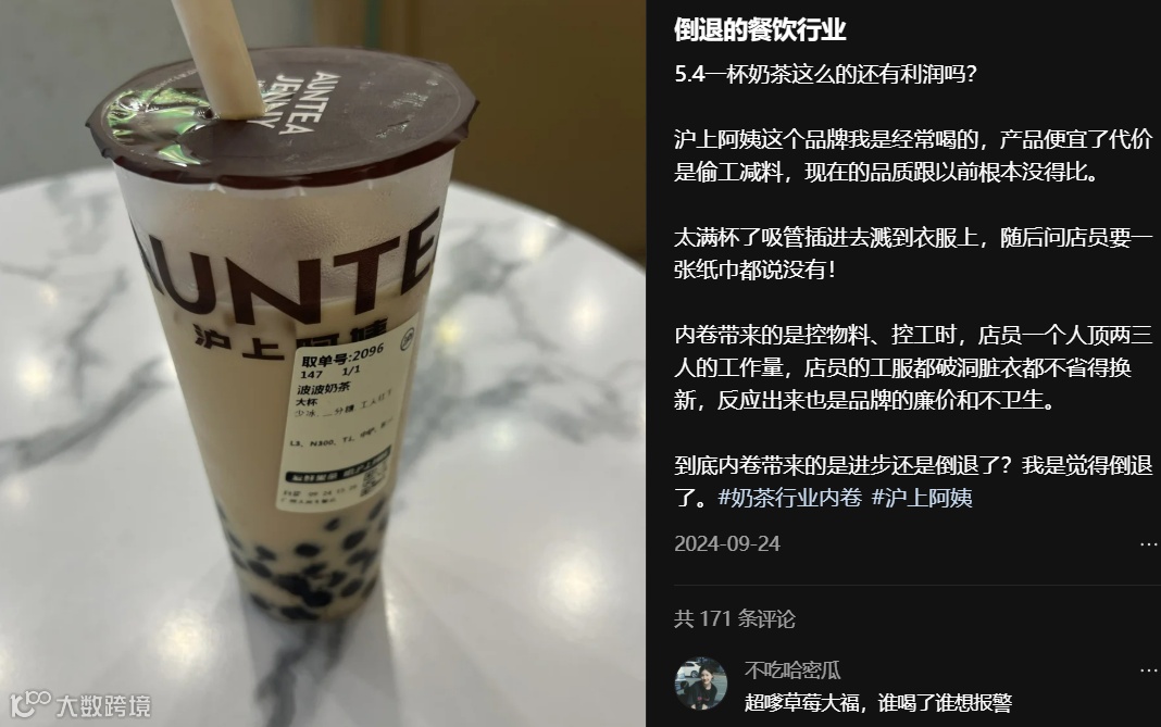 社交平台频现消费者对产品“偷工减料”“品质下降”的投诉,食安问题如饮品中出现异物亦屡有发生[[k]]
