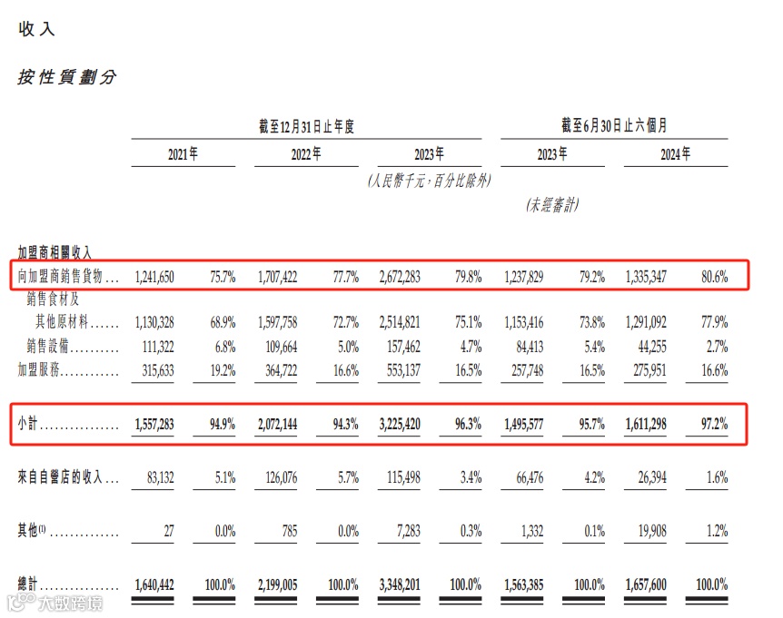 招股书显示,来自加盟商的货物采购收入占沪上阿姨总收入的80.6%,加盟相关总收入占比高达97.2%[[k]]。这表明其营收结构高度依赖加盟商体系[[k]]。