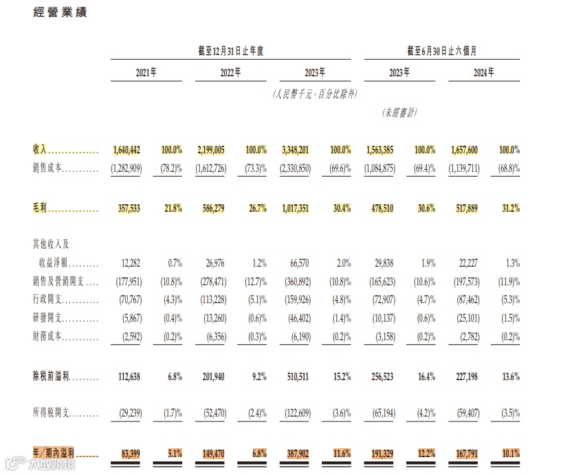 2021年至2023年,营收从16.4亿元增至33.48亿元,2024年上半年营收16.58亿元,同比增长但净利润下滑12.3%至1.68亿元[[k]]