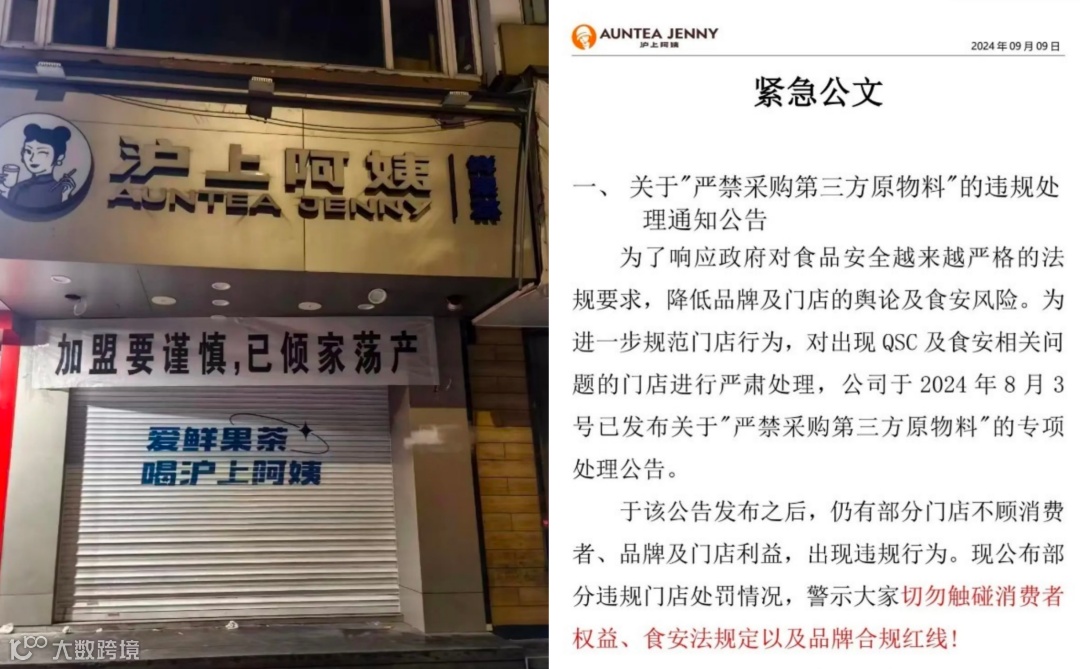 有加盟商反映因总部原材料价格过高,转而外部采购遭罚款并被强制关店,引发对加盟模式的质疑[[k]]