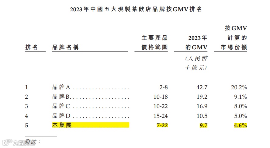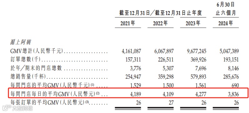 衡量茶饮品牌规模的核心指标为GMV与门店数量,沪上阿姨在两项指标上均未居前列[[k]]