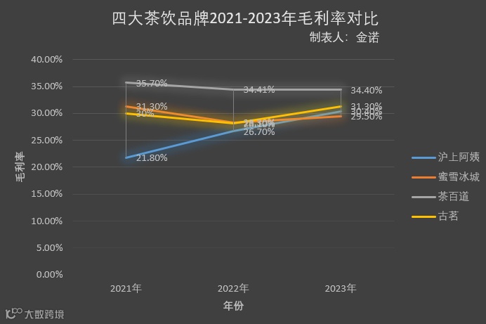 毛利率近三年持续低于同价位品牌,2023年为30.4%,净利率仅11.59%,显著低于蜜雪冰城(15.7%)、古茗(17.4%)和茶百道(22%)[[k]]