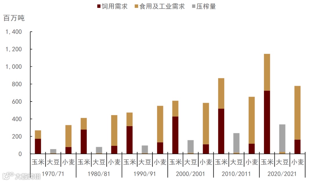 图表11:全球玉米、大豆、小麦饲用消费量
