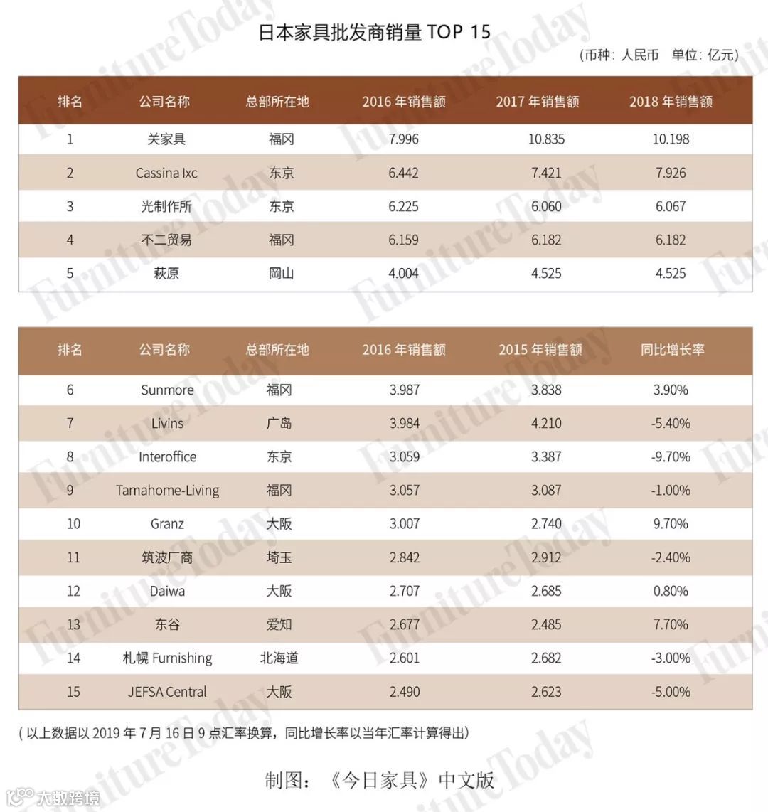 本期文章将重点介绍几家日本领先的家具批发商及其特点。