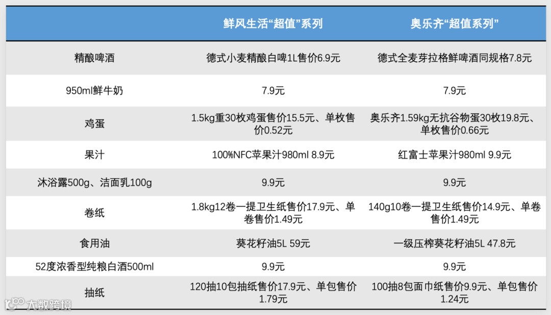 图:鲜风“超值”系列与奥乐齐“超值”系列部分商品的价格对比