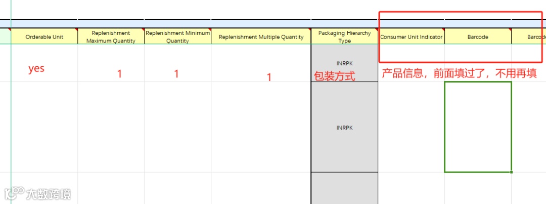2.上传产品信息,填写完产品信息后,点击Upload Template上传表格。