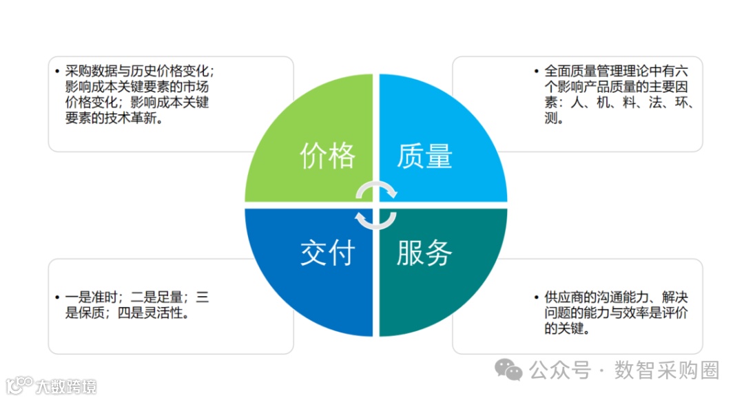 对于服务类采购,建议采购人员在签署合同时制定服务标准协议(SLA, service level agreement),根据SLA跟进和督促供应商提供更优质的服务。对于其他品类,供应商的沟通能力、解决问题的能力与效率是评价的关键。