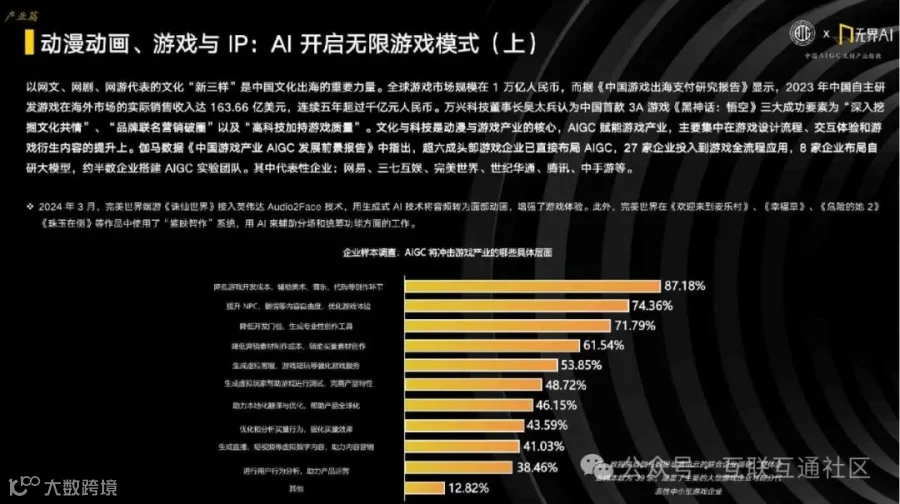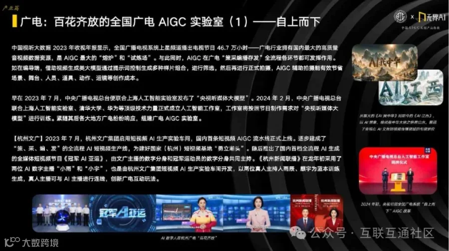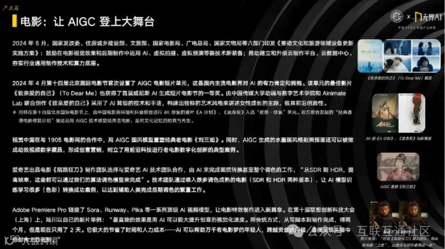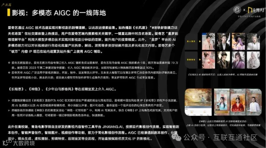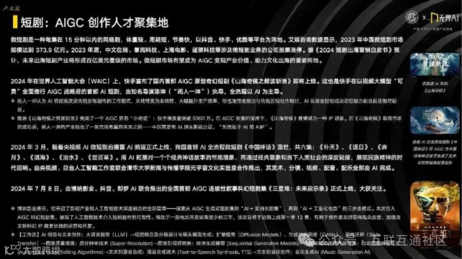 AIGC技术已在影视、动漫、微短剧、网络文学、音乐等多个文创领域广泛应用,显著提升生产效率,拓展创新边界,催生新业态与新机遇[k]。