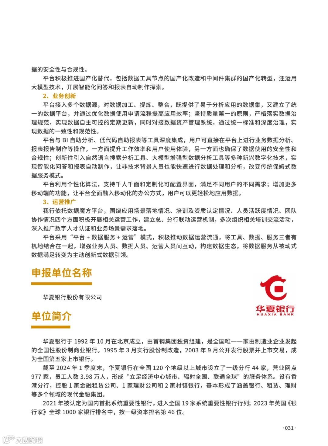 华夏银行推出企业级数据服务平台“数据魔方”,破解数据孤岛难题,显著提升数据应用能力,实现经济效益与社会效益双提升[k]。