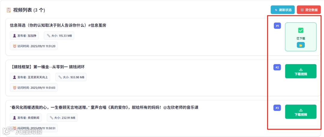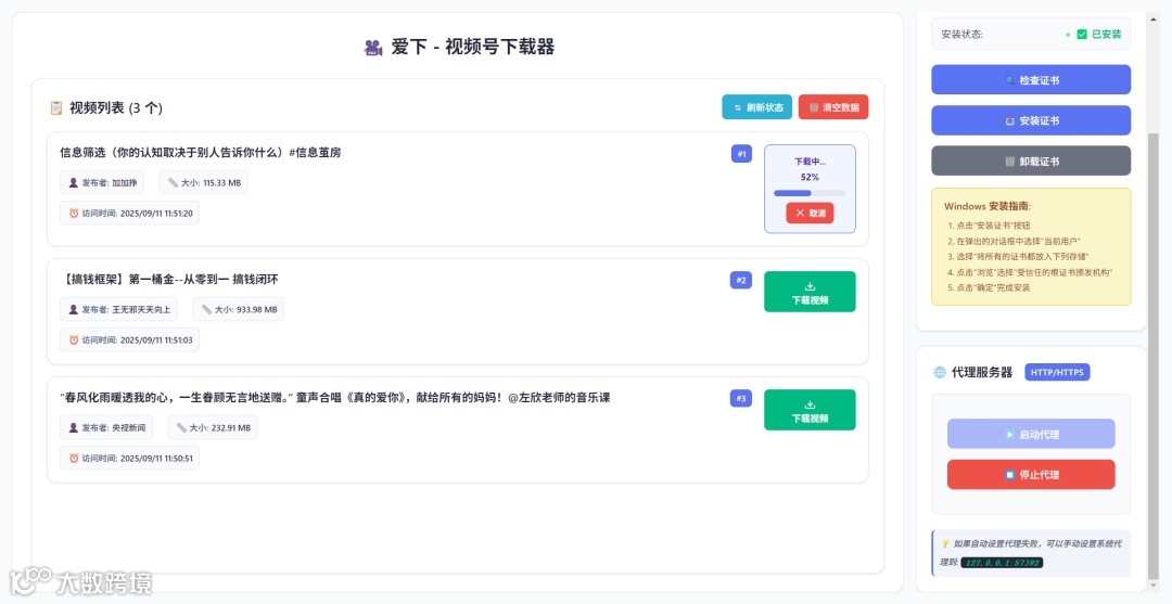 这边这一堆,是我在视频号首页点的,点了之后,对应的视频会捕捉到软件当中,成为一个个列表。