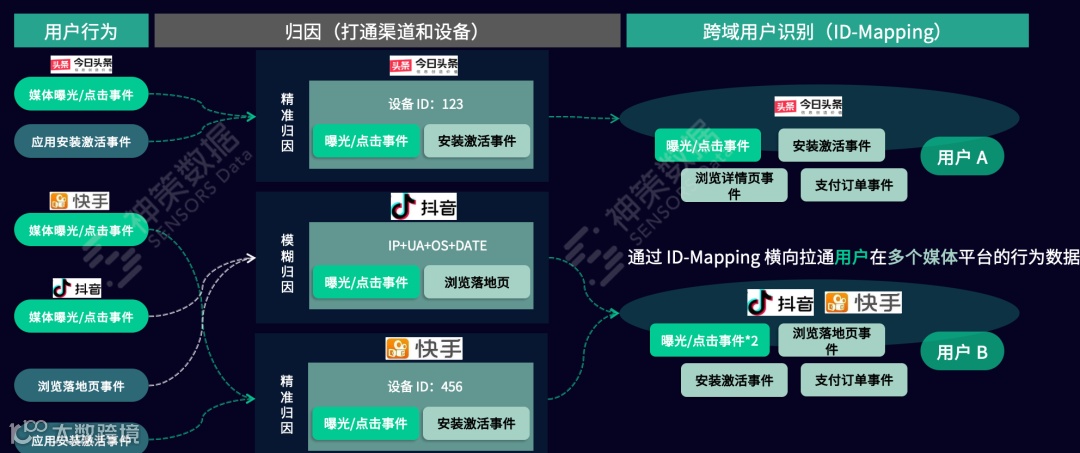 神策ID-Mapping技术可打通公域媒介数据与私域用户行为数据,实现广告点击与App激活等行为的统一串联,支持全链路转化分析[[k]]。