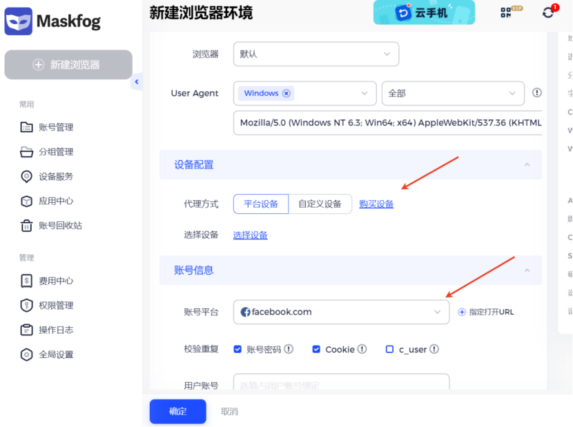 这时候推荐使用Maskfog指纹浏览器,优势就在于:它会为每个账号生成独立且可信的浏览器指纹,模拟真实设备环境,让Facebook认为这是一个全新、纯净的设备。Maskfog的特性包括: