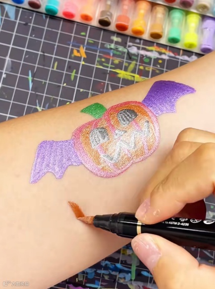 无独有偶,此前另一款“文身马克笔”也曾凭借相似的短视频模式在TikTok走红——通过拍摄在手臂绘制万圣节南瓜的创意,视频播放量超600万,并带动产品三周内销量突破8000单,在竞争激烈的文具赛道中脱颖而出。