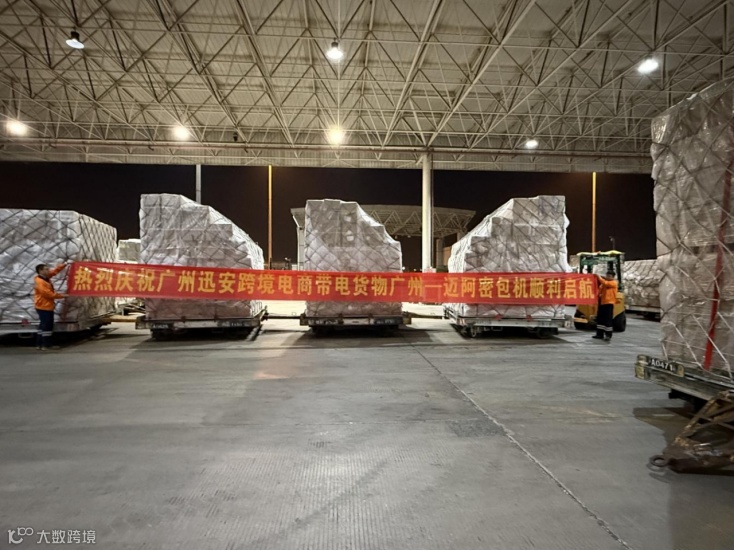 2025年11月27日凌晨,一架装载着跨境电商带电货物的全货机在广州白云国际机场顺利启航!本次航班是由广州直飞迈阿密,航班货物通过广东机场物流前置货站的便捷通道完成货物收运和安检工作。航班的顺利执行,标志着广州市迅安供应链管理有限公司助力跨境电商货物出海的综合服务能力达到新的更高水平。