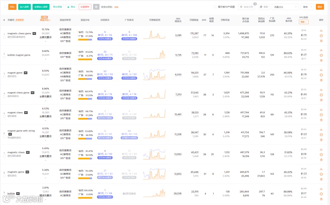 流量反查结果显示,主要依赖广告引流。核心关键词PPC竞价如下:magnetic chess game(1.7美元)、magnet chess game(1.4美元)、magnet chess(1.26美元)、magnet game with string(1.23美元)、magnetic chess(1.19美元),整体竞价水平较高,反映市场竞争激烈。