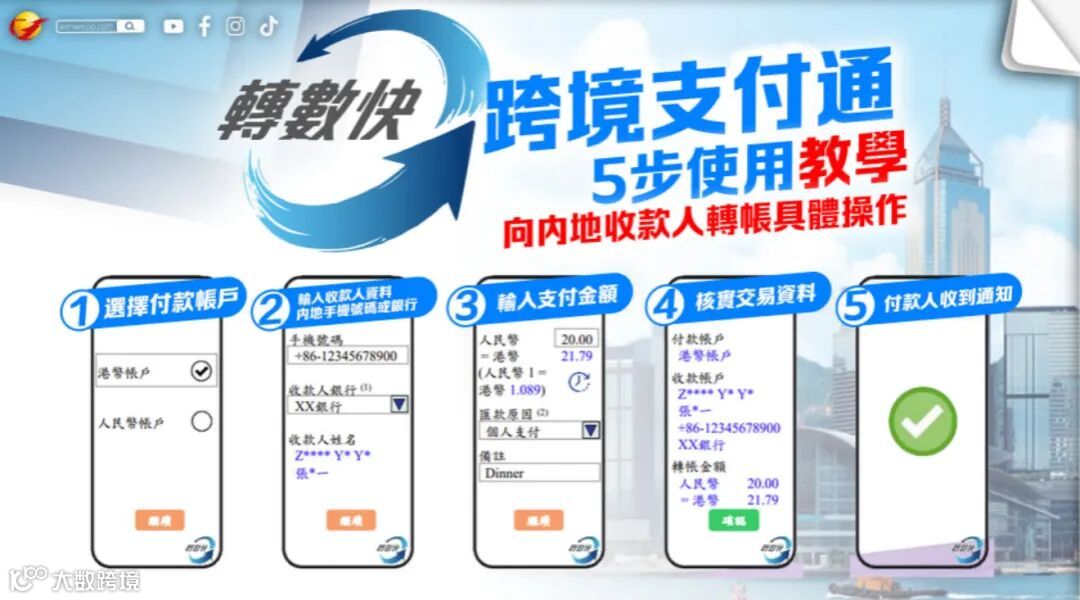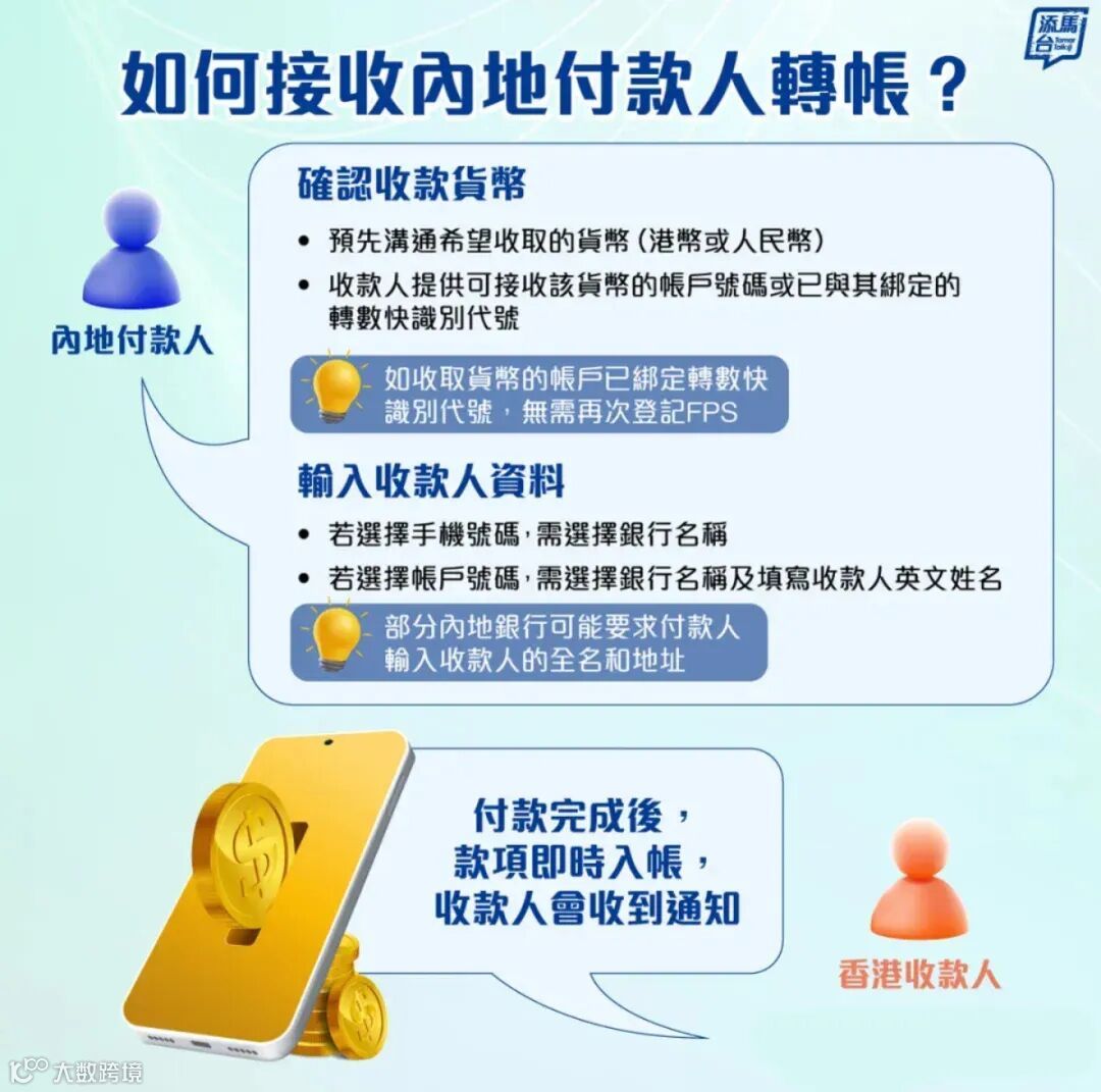 跨境支付通是连接内地“网上支付跨行清算系统(IBPS)”与香港“快速支付系统(FPS)—转数快”的桥梁,旨在为两地个人与企业提供安全、高效的实时小额跨境支付服务。