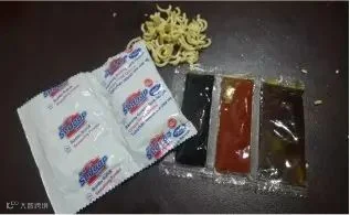 调料包含干湿两包:干料包配有香料粉、脱水鸡肉粒与炸蒜片;湿料则包括酱油类酱汁、甜辣酱及蒜油,后者为风味关键所在[k]。成品以咸甜为主调,香气浓郁,适合蒜味爱好者[k]。需注意分量偏小,为东南亚方便面普遍特点[k]。