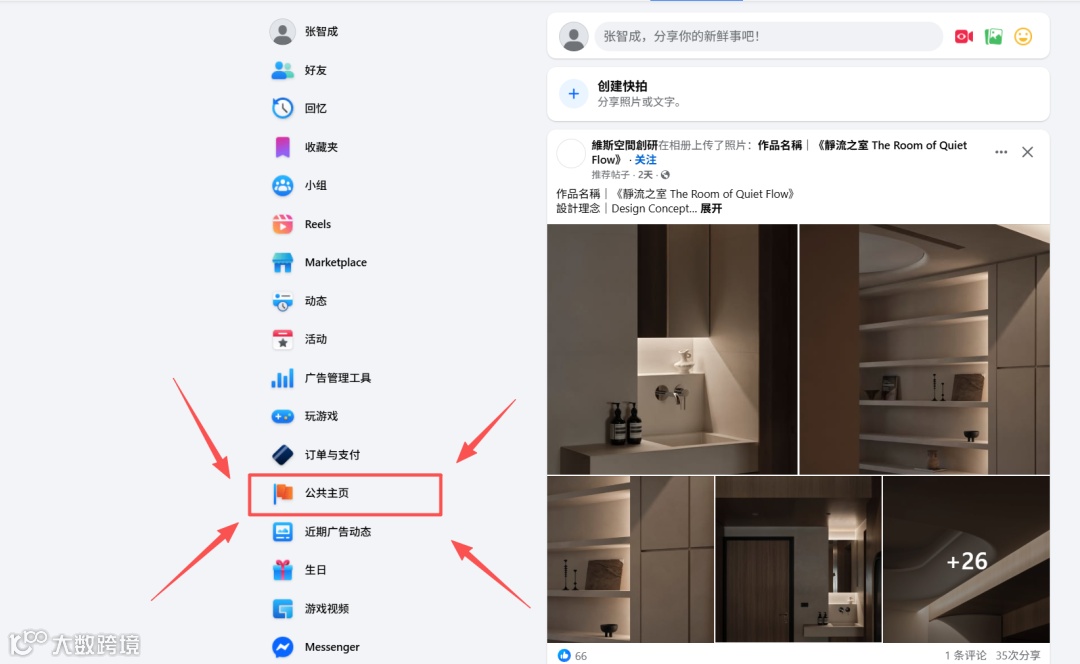 ,在这里我们点击左上角新建公共主页,上传图片、名字、类别等个人资料即可创建。