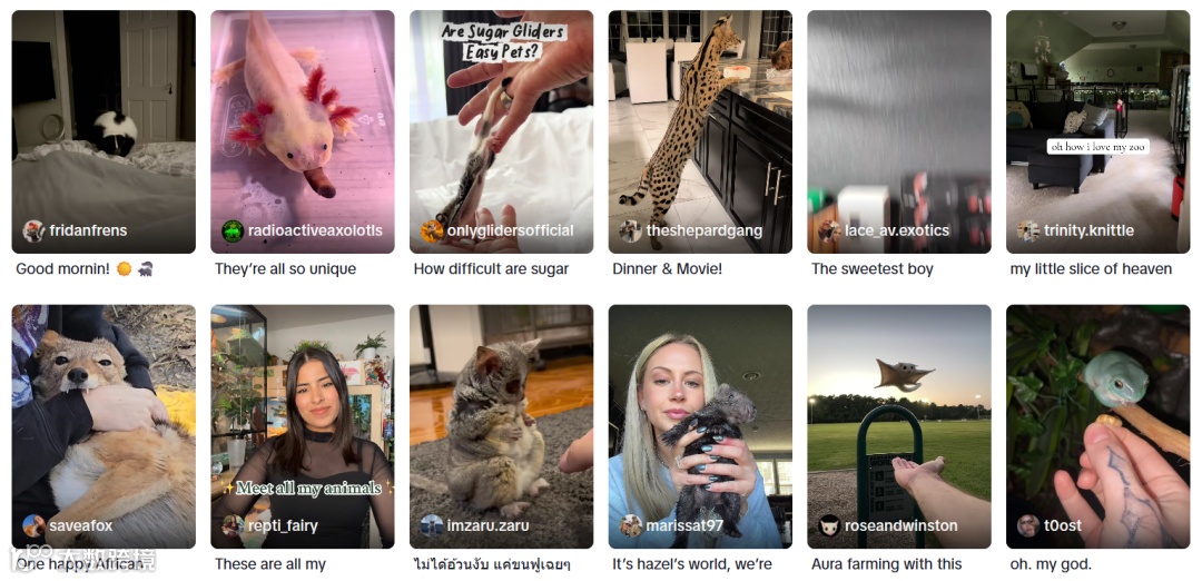在这一过程中,社交媒体的扩散效应,成为异宠走出小众圈层的关键推手。以 TikTok 为例,#exoticpets 话题下已累积超过 8 万条内容,形成一个持续自我生长的“异宠内容池”。