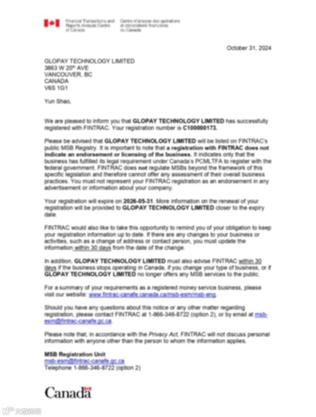 加拿大MSB牌照
