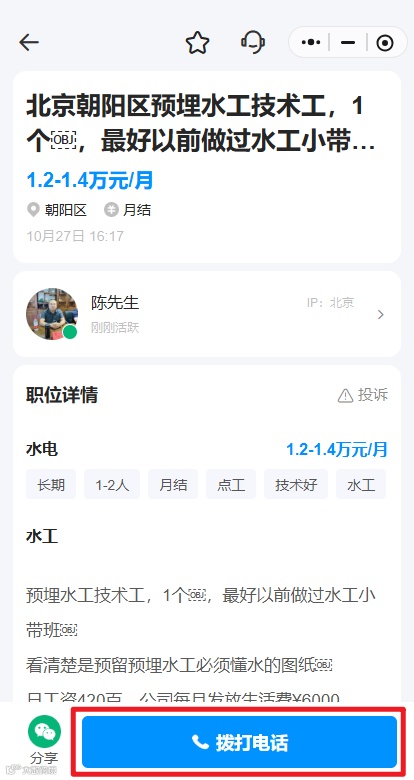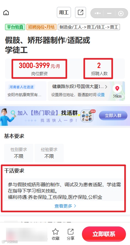 3.回到找工作界面后,就会推荐给你相关城市的优质工作,想做哪个就点哪个打电话沟通即可。