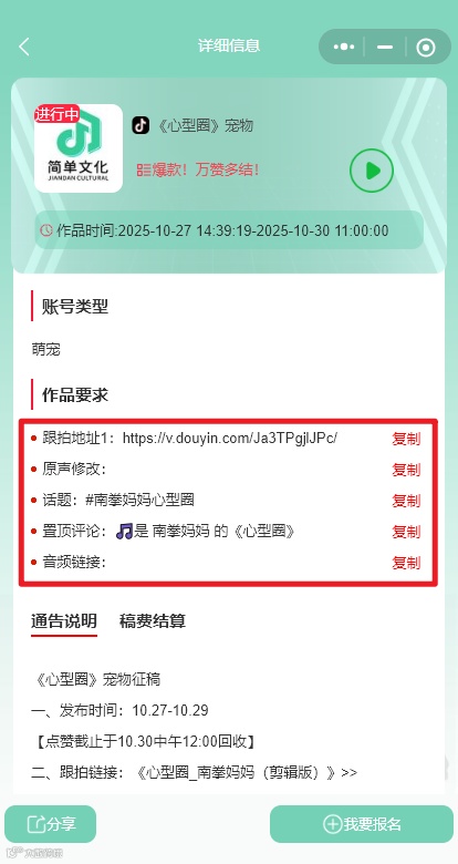 3.点开任务就能看到任务的详细要求和收益结算要求,符合要求直接报名就行了。
