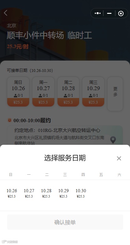 3.哪个离家近就接哪个兼职任务,选好之后点接单,就可以选具体工作时间了。