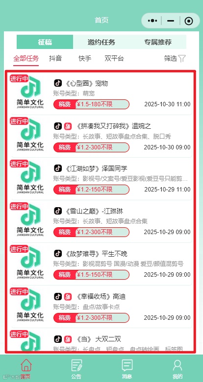 2.在首页全部任务中选一个想做的歌曲任务,建议选择稿费高的做。