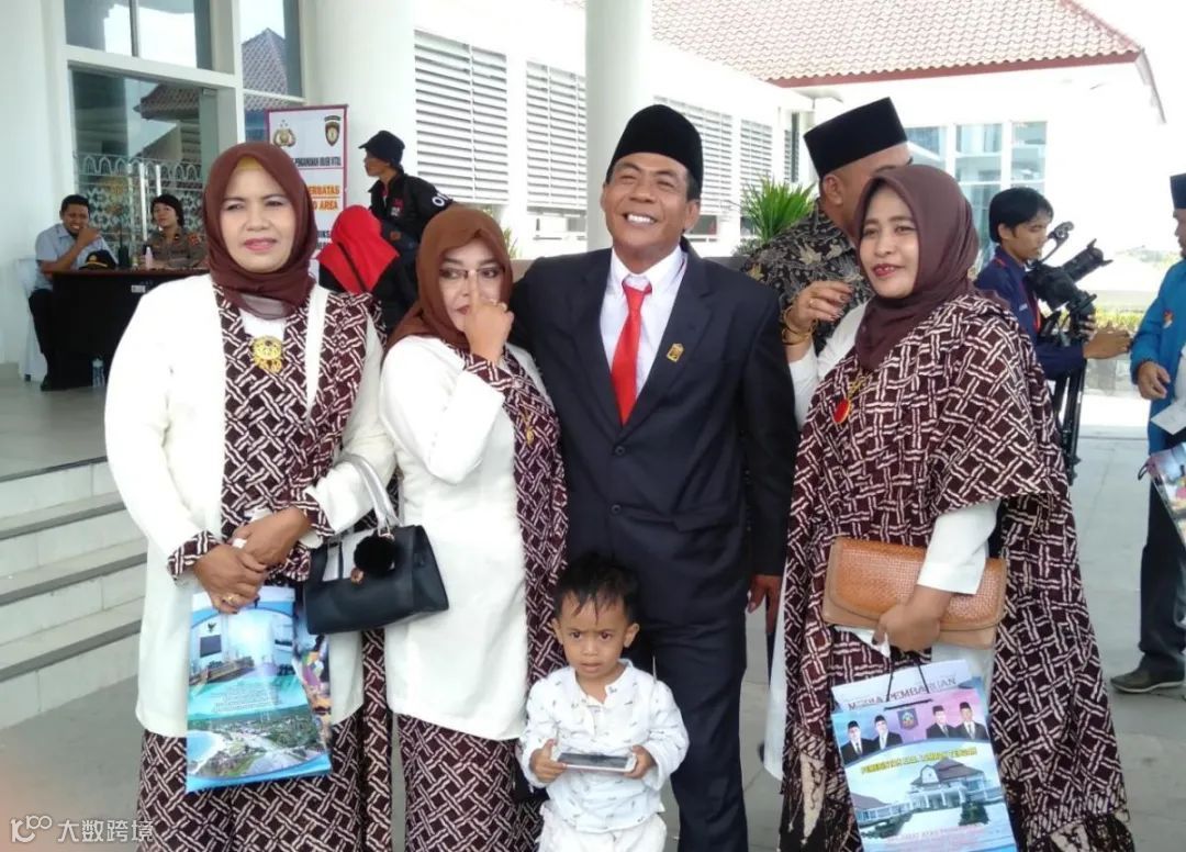 2019年10月6日,印度尼西亚国家民主党议员艾哈迈德·法德尔·穆扎基·赛亚在宣誓就任新一届议会议员时,携三位妻子共同出席就职典礼,引发社会广泛关注。现年39岁的艾哈迈德在22年前迎娶首任妻子,随后八年中又先后再婚两次,目前育有七个子女[k]。