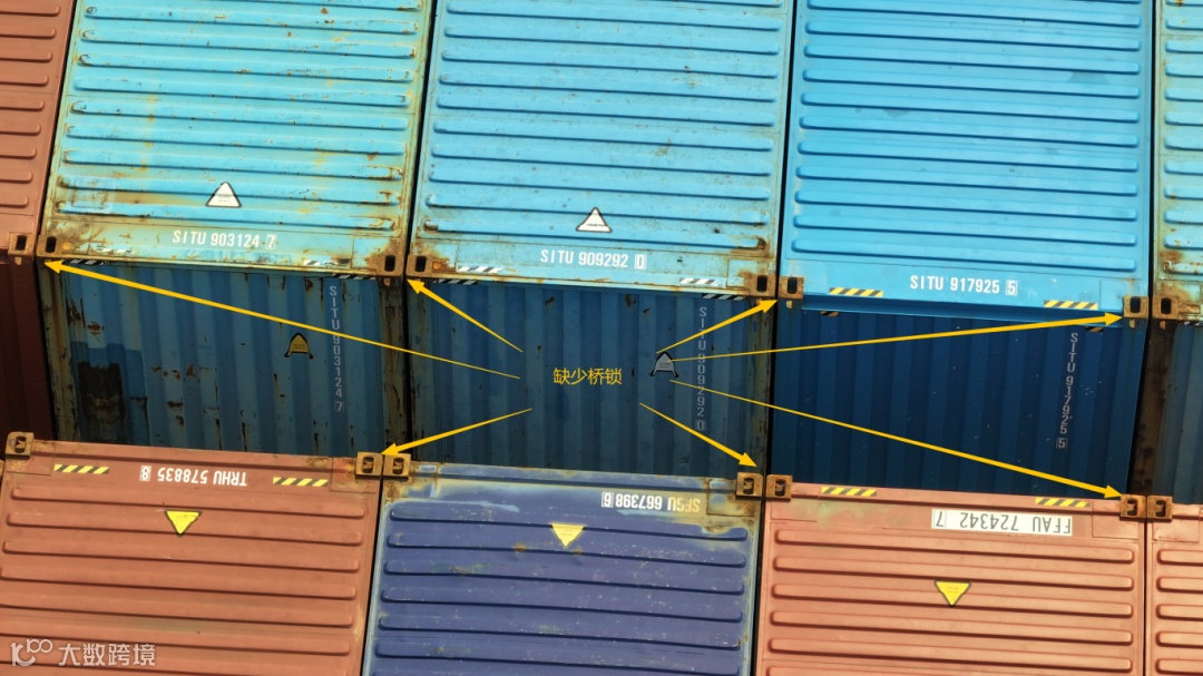 ✪未完整布置系固装置(如缺少桥锁、拉杆、木楔)。