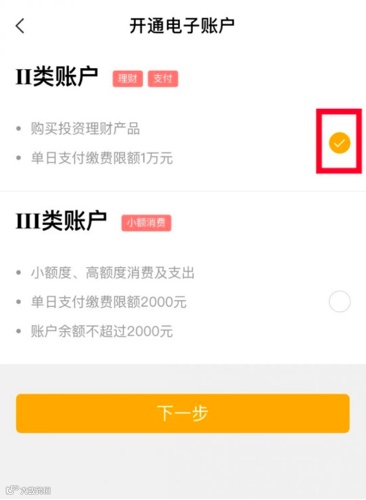 2 选择欲开通电子账户的类型。