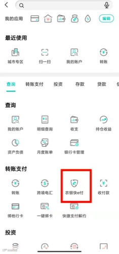 1 点击首页“全部”,选择“农银快e付”