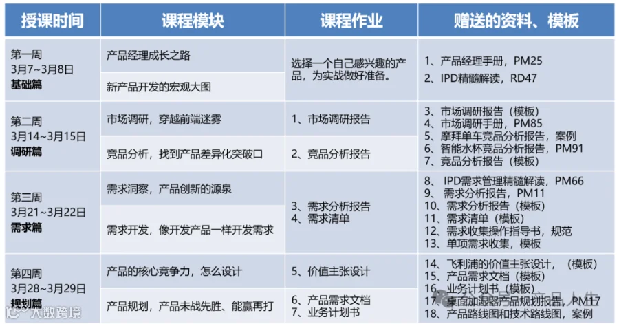 8节直播课,共分4个篇章:基础篇、调研篇、需求篇和规划篇。