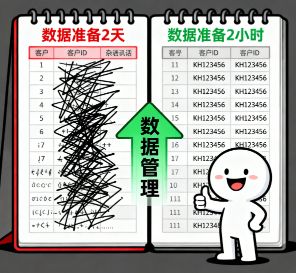 后来我开始做数据管理:给客户数据定了统一规则,比如客户ID必须是“KH+6位数字”,手机号统一为11位纯数字,用工具把重复数据自动标记出来。你猜怎么着?再做同样的分析,数据准备时间从两天缩到了两小时。如果你每天都在跟格式、重复数据死磕,那不是你不够努力,是没做数据管理。