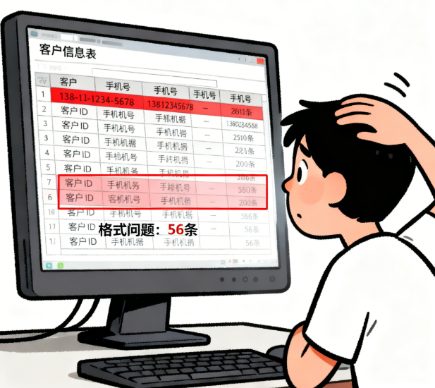 3. 文本字段:手机号统一为11位纯数字,邮箱必须包含“@”,客户姓名用“真实姓名”,别用昵称;