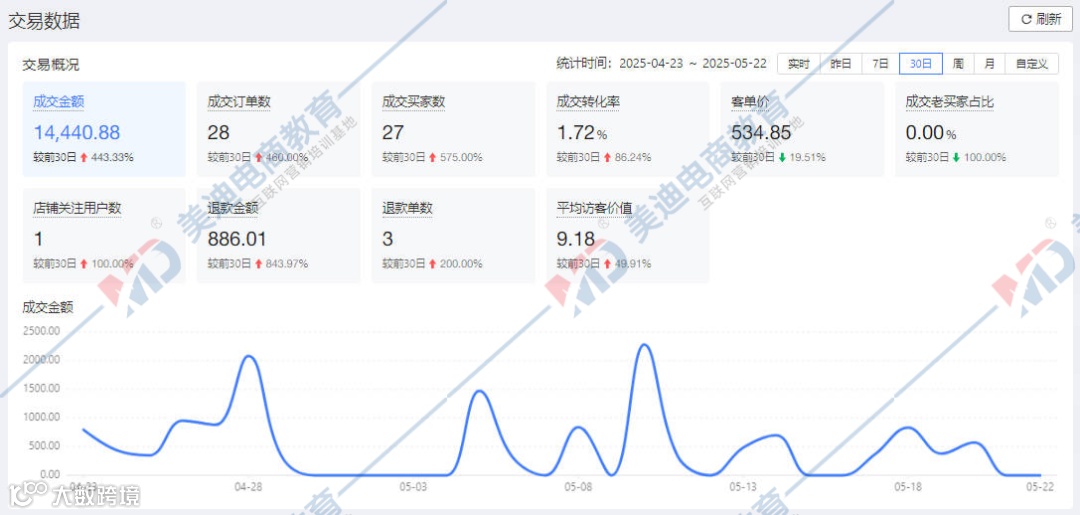抖音直播班女鞋类目学员在学习前直播成交表现平平,通过系统学习课程知识并结合老师辅导,优化直播策略后,成功实现成交额的显著提升