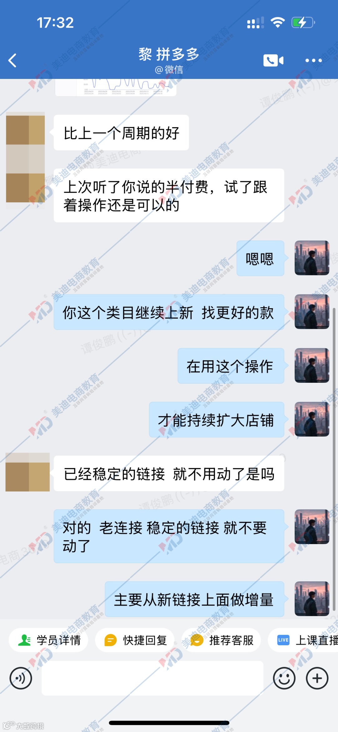 拼多多班一位厨房电器类目学员从零基础起步,完成课程学习后,在老师的指导下应用微付费引流、搜索测款等策略,有效拉动全站推荐流量,全面提升店铺权重。近30天内店铺成交金额突破1万元,成绩斐然