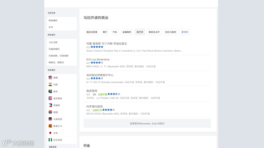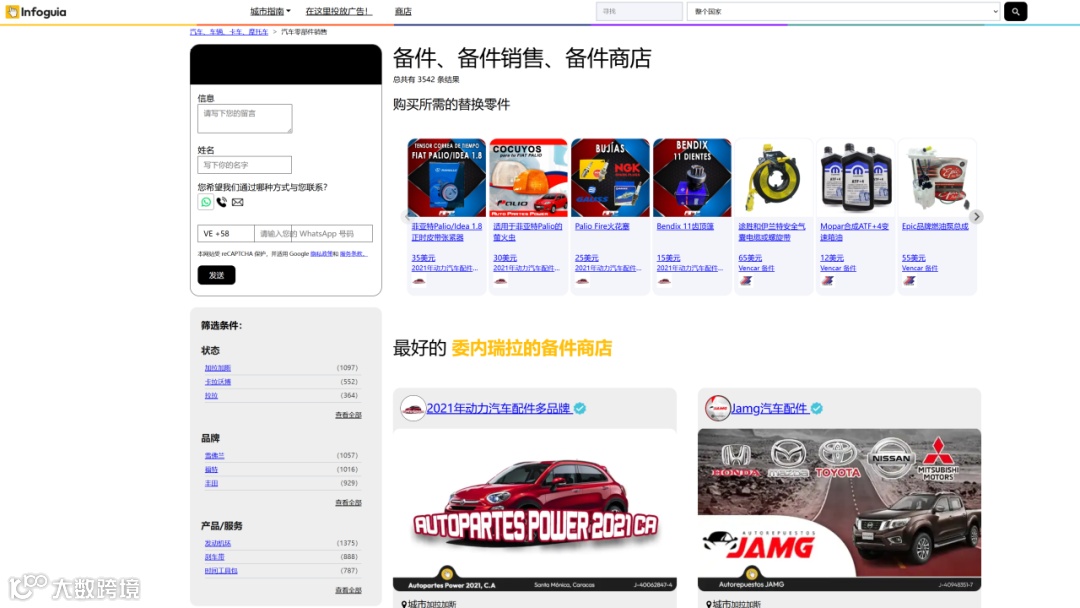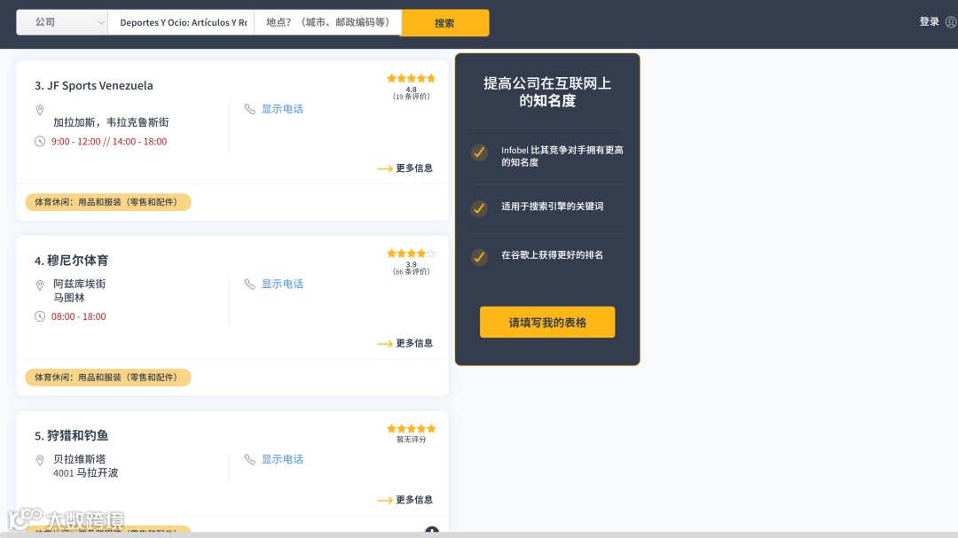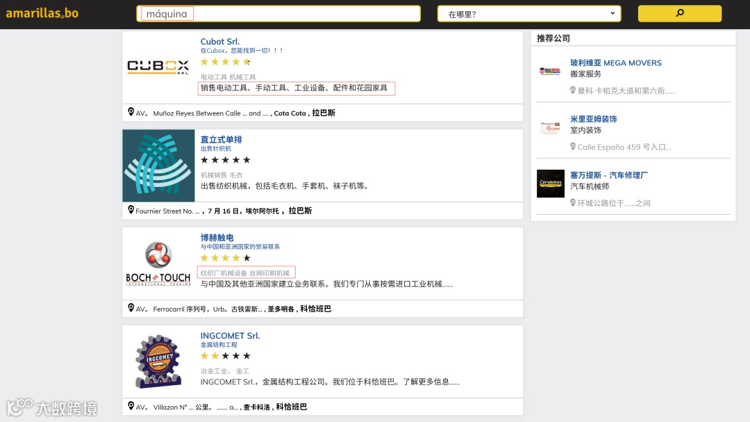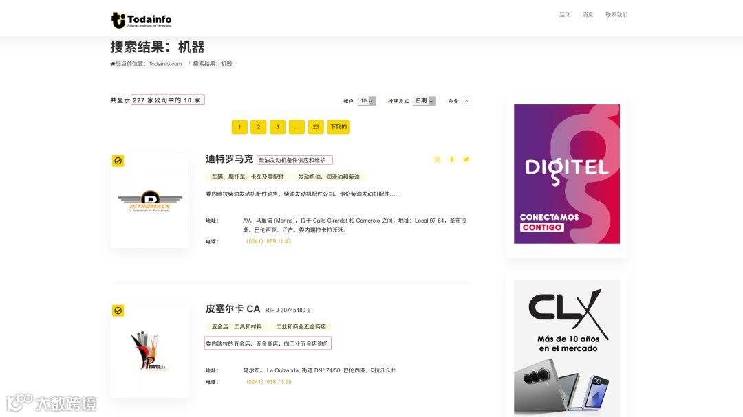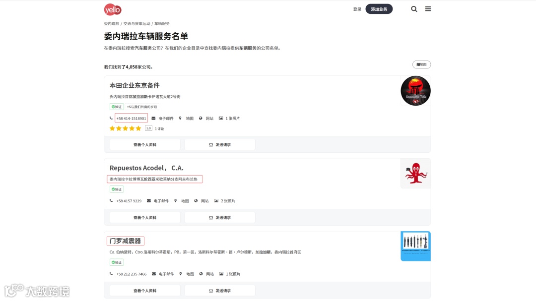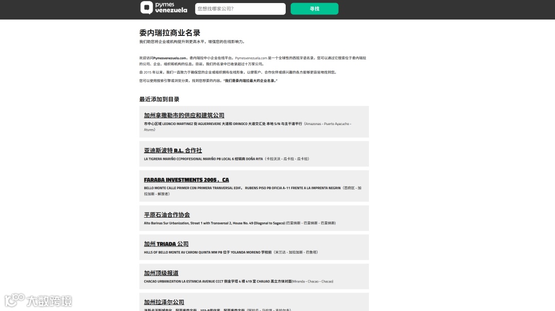 委内瑞拉本地企业黄页网站,涵盖餐饮、旅游、医疗、教育、零售、制造业、运输等多个行业。