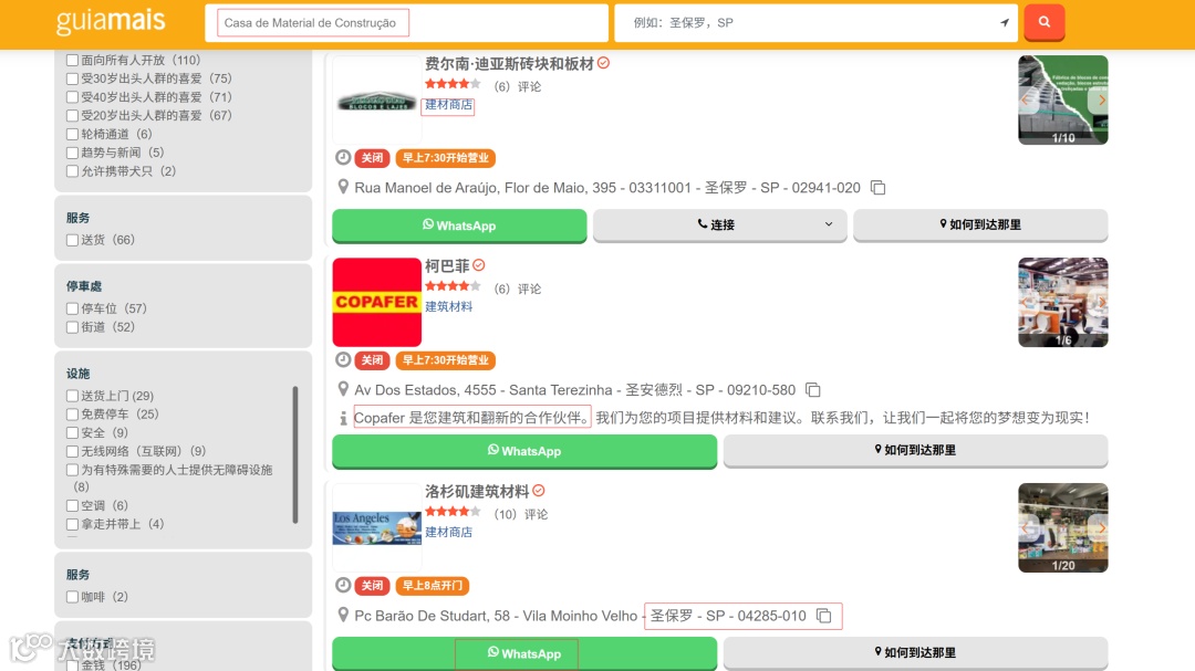 巴西最大的商业目录及生活服务平台,提供企业名称、官网、电话、WhatsApp和社交媒体主页等联系信息,支持按行业或城市检索。
